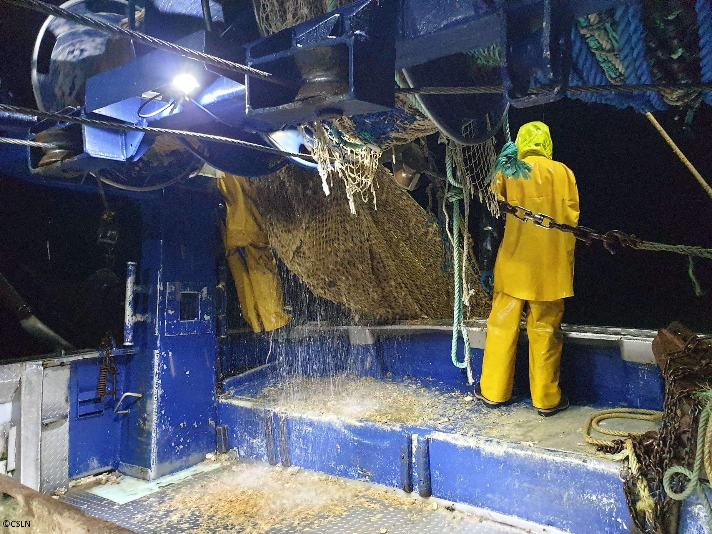 Scientifiques à la réception du chalut